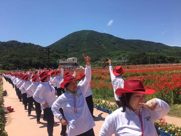 하동군 평생학습 수강생, 라인댄스로 꽃양귀비와 하나 돼