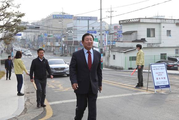 [포토] 미세먼지 발령, 조근제 함안군수 도보 출근
