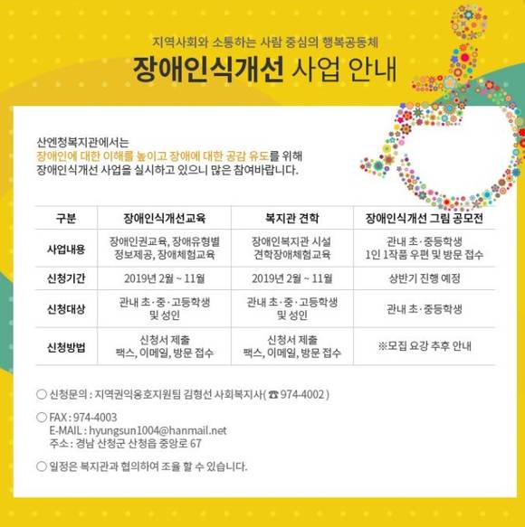 산청군, 산엔청복지관 장애인식개선사업 실시