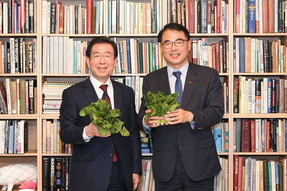 장충남 남해군수, 박원순 서울시장에 시금치 세일즈