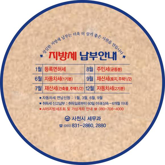 사천시, 지방세 납부안내 홍보물품 제작 배부