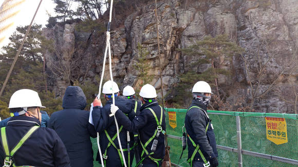 산청군, 적벽산 정비공사 낙석위험 사전제거