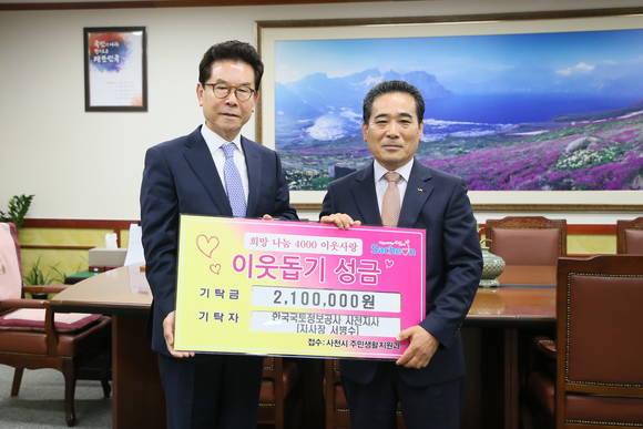 한국국토정보공사 사천지사, 사천시에 이웃돕기 성금 전달