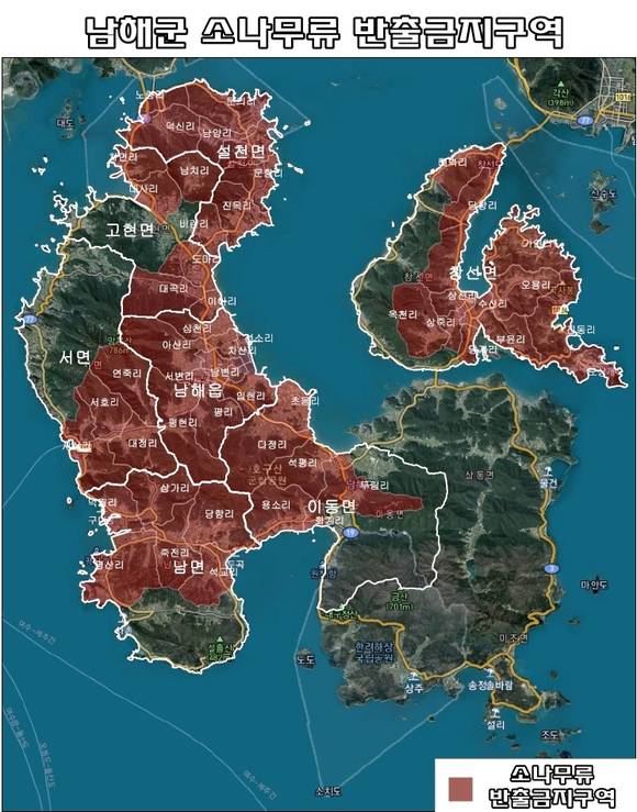 남해군, 소나무류 반출 금지구역 변경 지정 공고