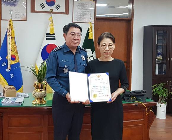남해군 안선희 관제요원, 남해경찰서장 감사장 받아