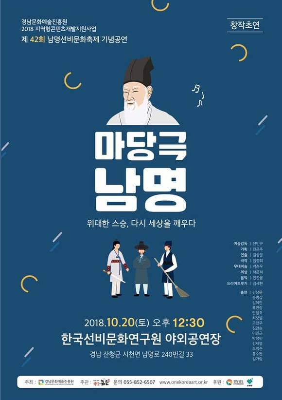 산청군 조선 선비 '남명 조식' 마당극 20일 개최