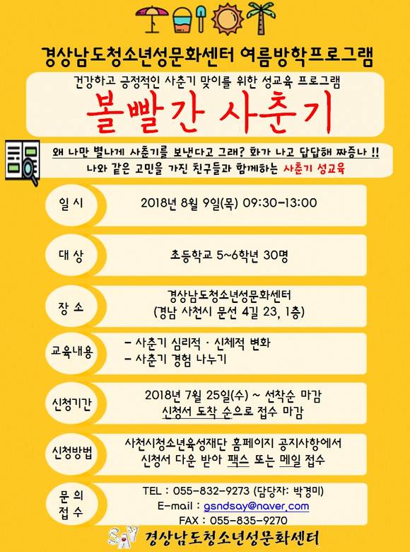 사천시청소년육성재단, 초등학생 여름방학 성교육 참가자 모집