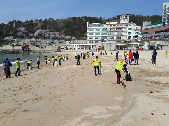 사천시 어촌주민·봉사단, 해안변 대청소 실시