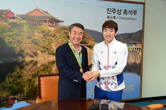 이창희 진주시장, 리우올림픽 펜싱 금메달 박상영 선수 격려