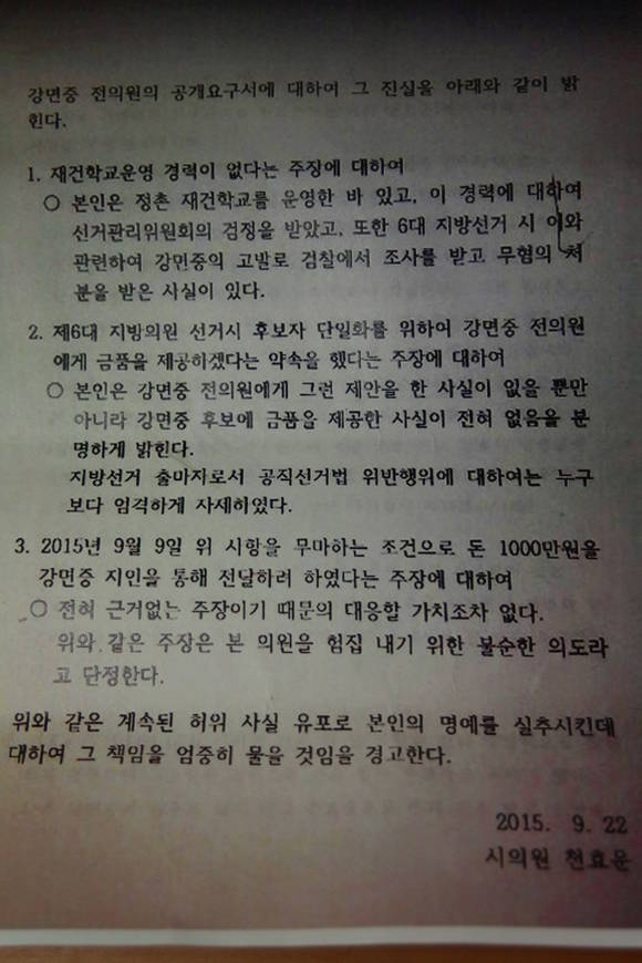'명예훼손·선거법위반' 천효운 진주시 의장 고발 당해