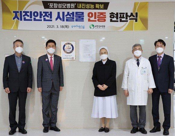 포항시 '포항성모병원' 지진안전 시설물 인증 현판식 열어