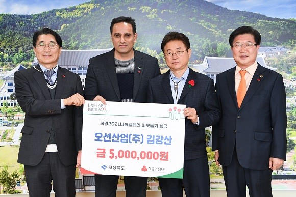 오션산업 김강산 대표, 이웃돕기 성금 전달