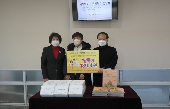 알로하아이디어스, 교육용 학습기기 사운드북 '담뿍이' 후원품 포항시에 전달