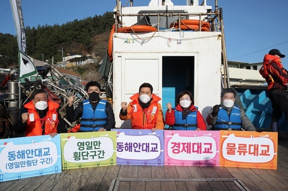 포항시, '동해안대교 건설 기원'영일만바다 선박 횡단