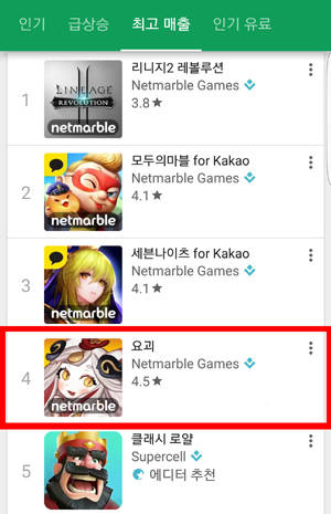 넷마블 '요괴' 출시 8일만에 구글 매출 4위 달성