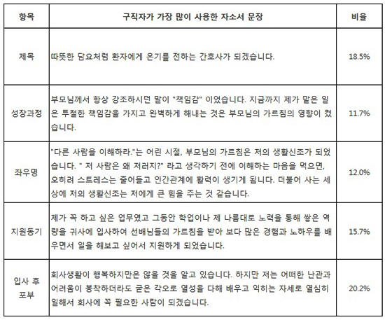 구직자, '자소서' 가장 많이 쓰는 문장은?