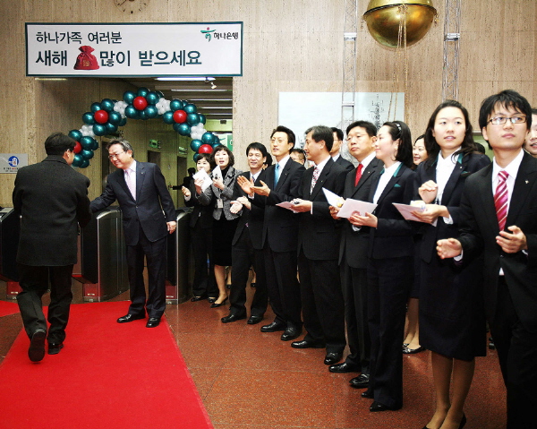 김종열 하나은행장, 출근 직원들에게 새해인사