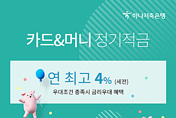 하나저축은행, 최고금리 4.0% '카드&머니 정기적금' 출시