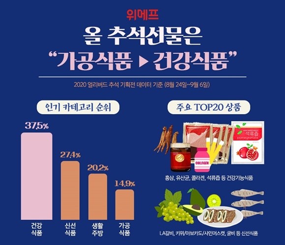 위메프, 올 추석 선물 '가공식품' 대신 '건강식품' 인기