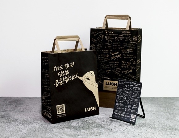 러쉬코리아, 코로나19 응원 메세지 담은 '쇼핑백·리플릿' 공개
