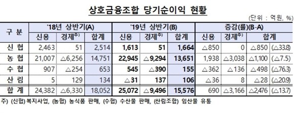 상호금융조합 상반기 당기순이익 전년比 13.7%↓