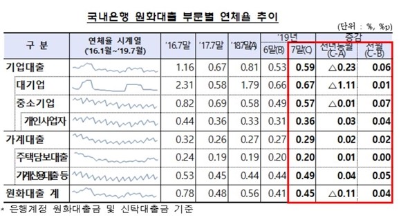 은행 원화대출 연체, 전월비 0.04%p 상승