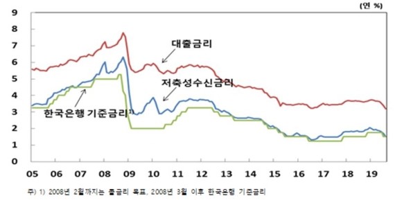금융기관 가중 평균 금리 '시장금리 영향' 하락