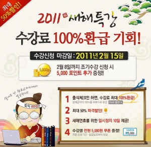 정철사이버, 설 연휴 수업일수 보장 이벤트