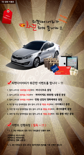 티켓다이어리, K5 걸고 추천 이벤트 진행