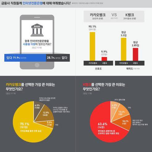 금융업 종사자 '인터넷전문은행' 이용설문 '카카오뱅크' 압승