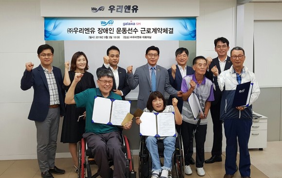 우리엔유, 장애인운동선수 4명 근로계약 '장애인 복지 최고는 일자리'