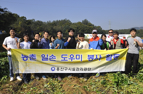 용산구시설관리공단 임직원 재고마 수확 "고구마가 제 머리만 해요"