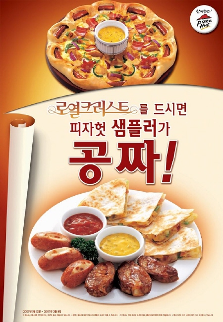 로열 크러스트 피자 주문하면, 샘플러가 공짜