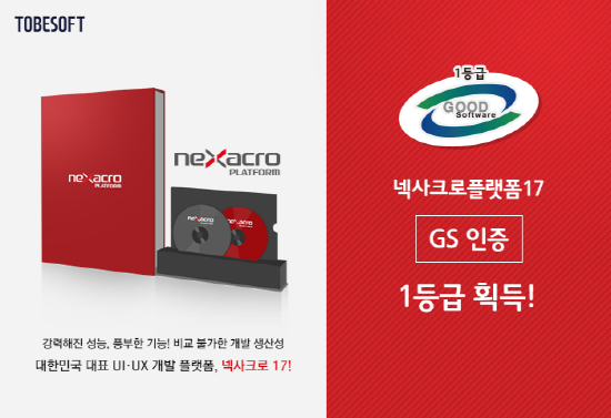 투비소프트 '넥사크로플랫폼 17' GS인증서 1등급 획득