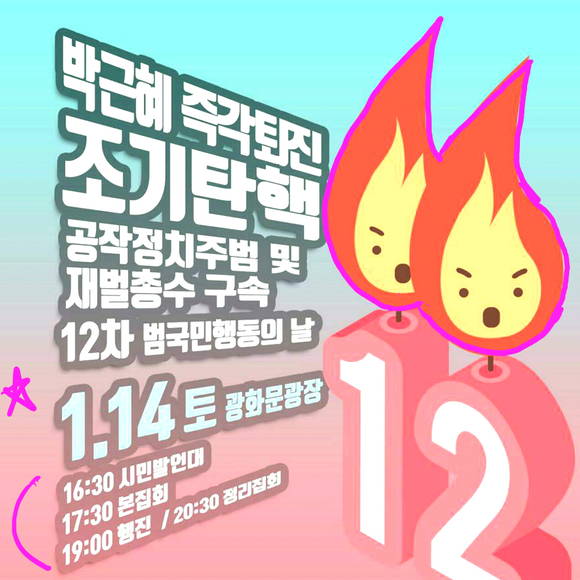 "혹한에 더 타오르는 촛불" 14일 12차 촛불집회