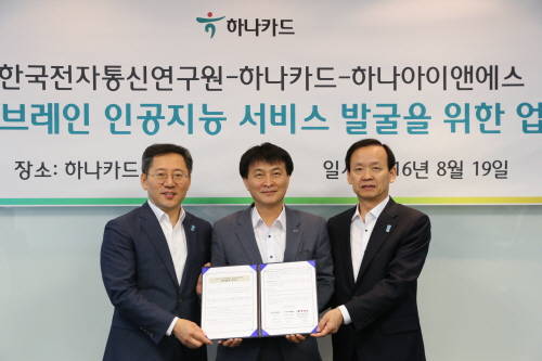 하나카드·하나아이앤에스, ETRI와 인공지능 서비스 MOU 체결
