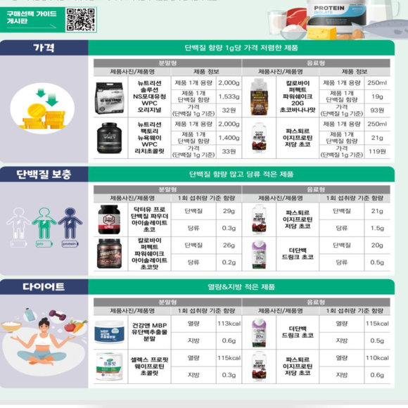 소비자원 "단백질 보충 일반식품, 제품별 함량 차이 커"