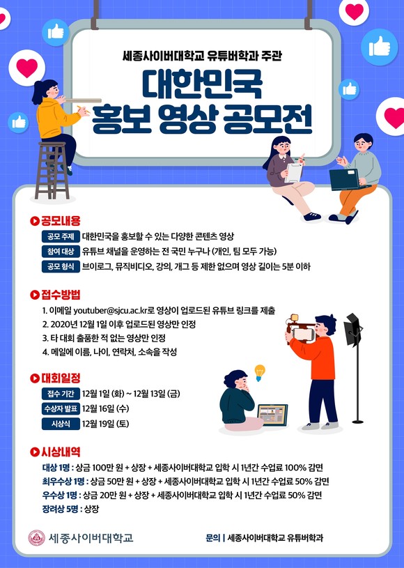 세종사이버대 유튜버학과, '대한민국 홍보영상 공모전' 개최