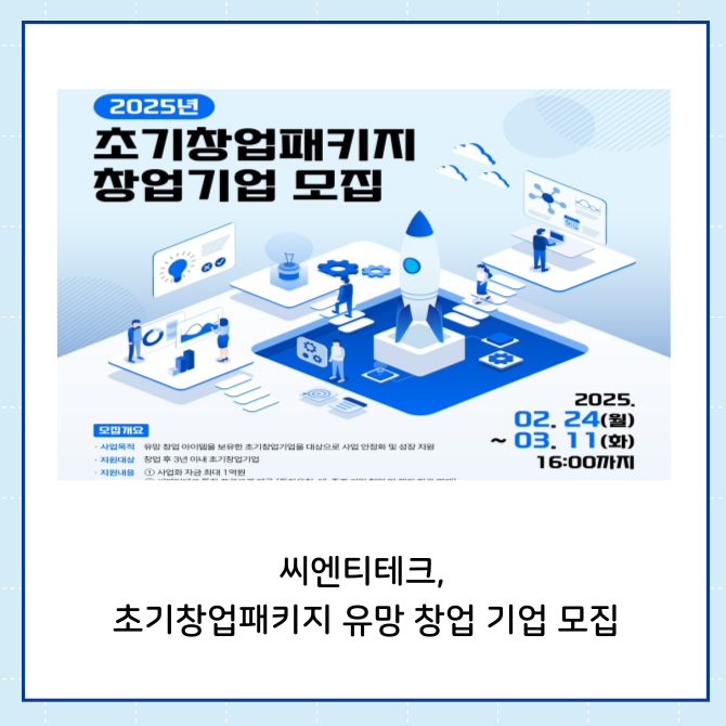[카드] 씨엔티테크, 초기창업패키지 유망 창업 기업 모집
