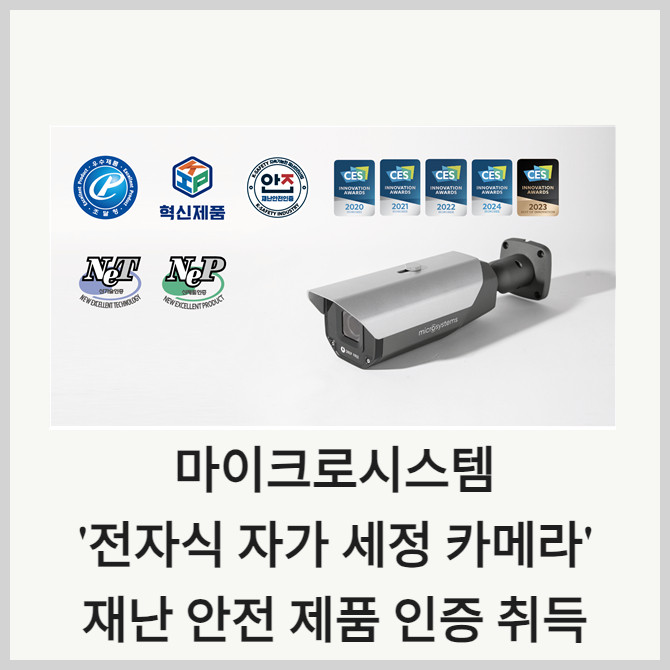 [카드] 마이크로시스템 '전자식 자가 세정 카메라' 재난 안전 제품 인증 취득