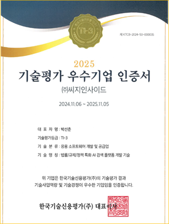 씨지인사이드, 한국기술신용평가 T-3 등급 획득