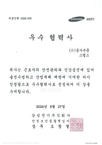 스탭스, 삼성전기 협력업체 안전보건 평가 '우수상'