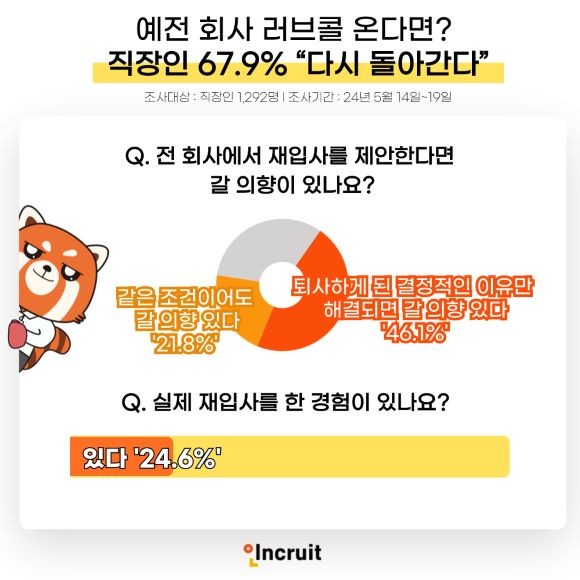 직장인 67.9% "떠난 회사 부르면 다시 간다"