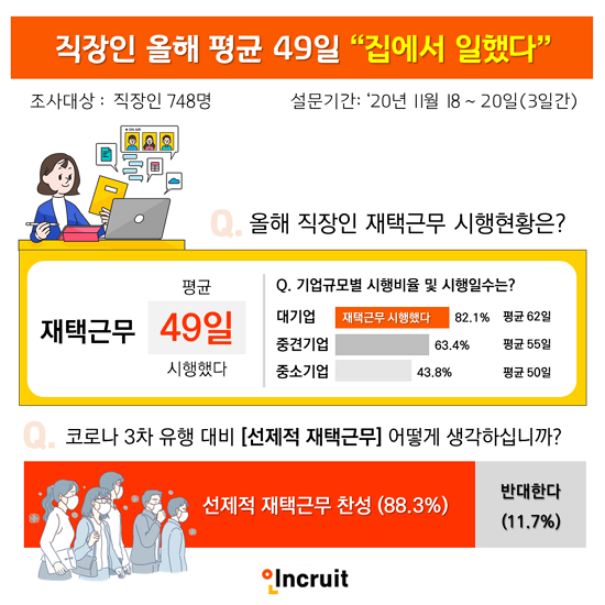 코로나19 장기화에…직장인, 올해 평균 49일 '재택근무'