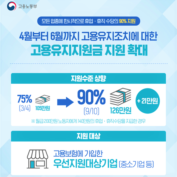고용유지지원금 예산 5000억 확대…모든 업종 90%까지 지원