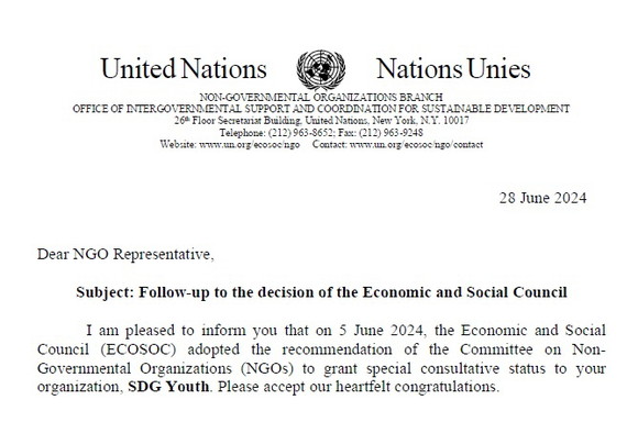 에스디지유스, 유엔 경제사회이사회 특별 협의 지위 획득