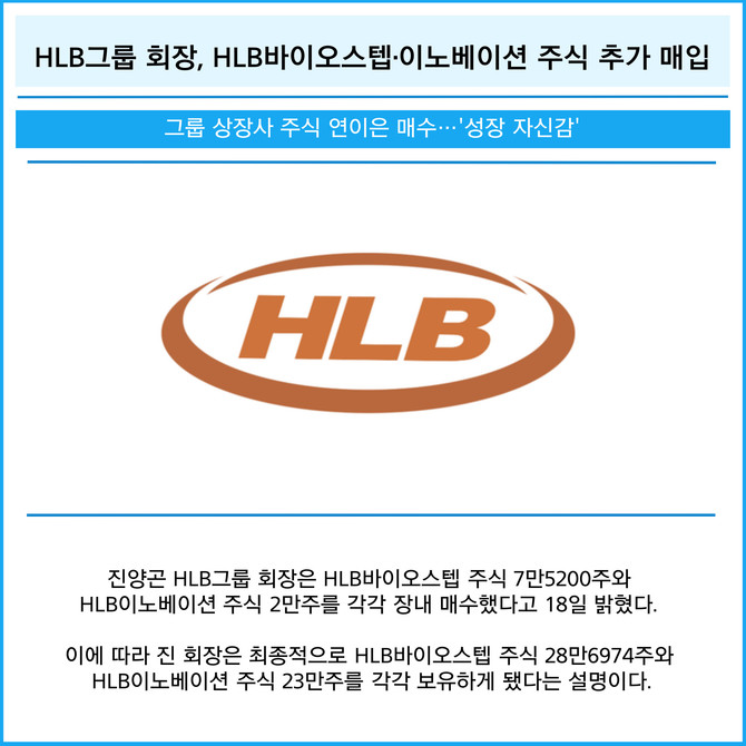 [카드] HLB그룹 회장, HLB바이오스텝·이노베이션 주식 추가 매입
