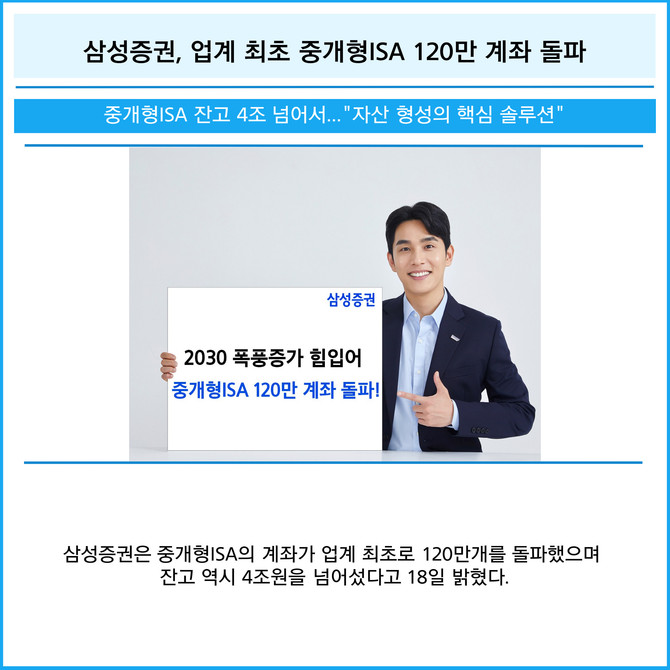 [카드] 삼성증권, 업계 최초 중개형ISA 120만 계좌 돌파