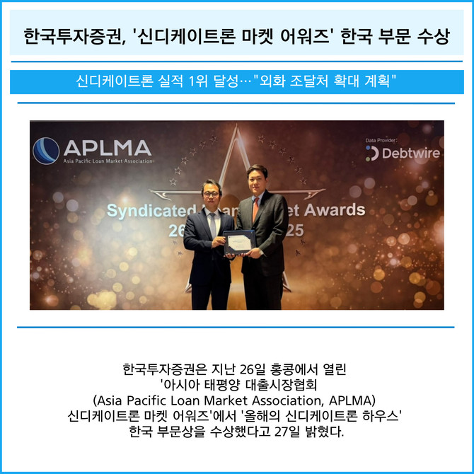 [카드] 한국투자증권, '신디케이트론 마켓 어워즈' 한국 부문 수상