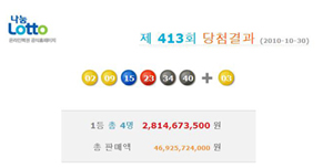 제413회 로또당첨번호 ‘2, 9, 15, 23, 34, 40’…보너스 ‘3’
